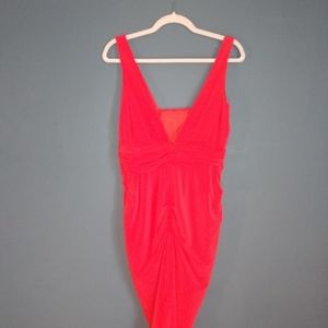 Red persimmon color has an inner sheath looks different under different lighting. Opens up as you walk like a tulip.