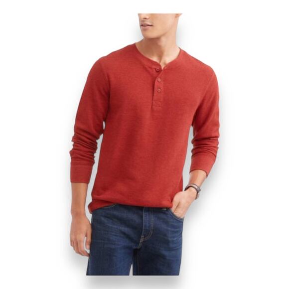 Essential by Seven Apparel Mens Long Sleeve Waffle Knit Thermal Henley, Red