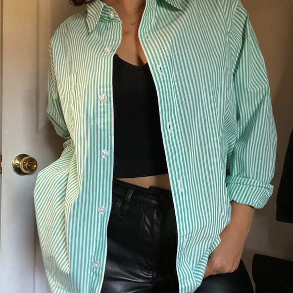 Green and White Striped button up