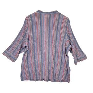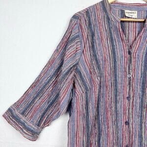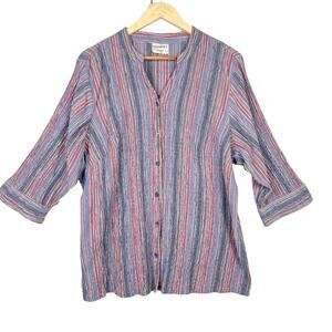 Essentials 18/20 Striped Button Down Blouse Crinkle Gauzy 3/4 Sleeve Coastal