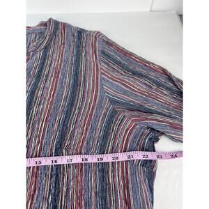 Essentials By Maggie 18/20 Striped Button Down Blouse Crinkle Gauzy 3/4 Sleeve V Neck Coastal