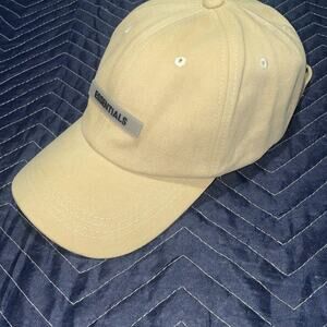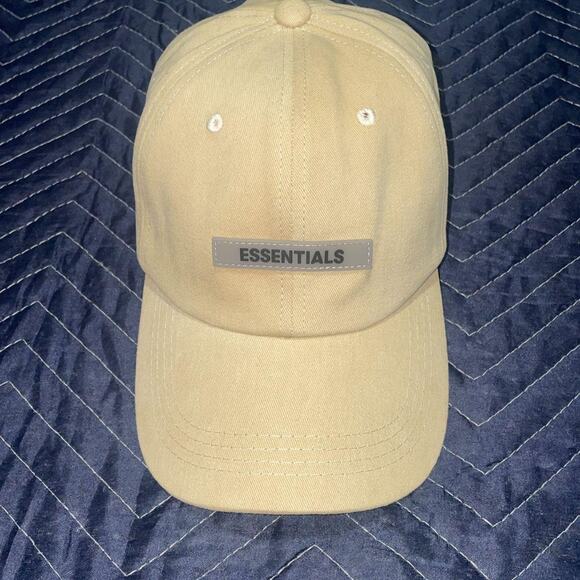 Essentials Fear Of God Baseball Cap, Classic Curved Brim Cap, Rubberized Logo Patch, Khaki / Beige / Ivory Color, 100% Cotton Canvas, Adjustable Strap, One Size Fits Most, (NEW) Without Tag.