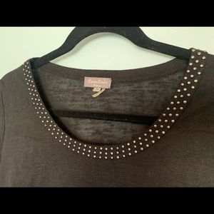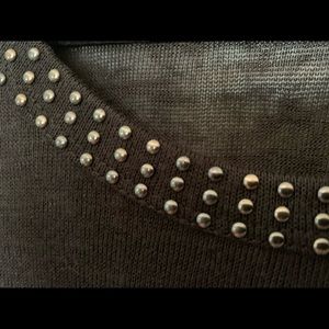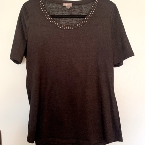 Black, knit short sleeved blouse by Essentials with studded collar. 100%polyester