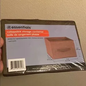 Essentials collapsible storage container in brown. Perfect for organizing books, toys, and more.