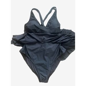 Essentials By Catalina Swim Dress Womens 2X Black Plunge Neck Swimsuit NWT