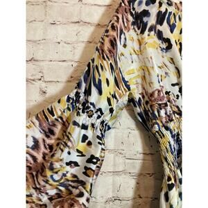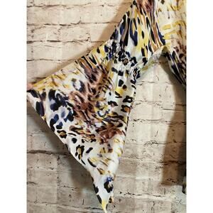 Essentials By Milano Babydoll Top Womens Small Animal Print Satin Flared Sleeve