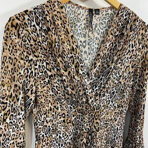 Essentials By Milano Leopard Print Jersey Knit V-Neck Dress, Medium