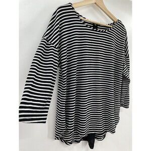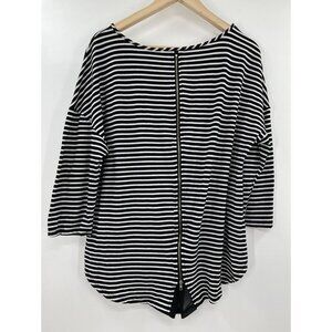 Essentials By Milano Top Women Black White Striped Zipper Size XL.