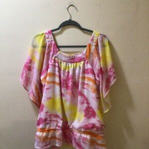 Essentials By Milano sheer sleeve multicolor tie-dye pattern blouse