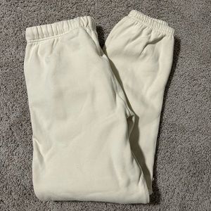 Comfortable cream track pants. Elastic waistband with drawstring. Relaxed fit for everyday wear.