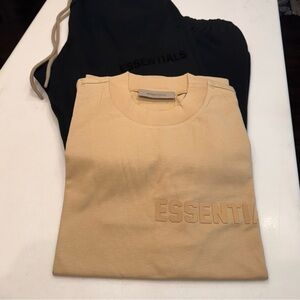 BRAND NEW with tags. Men’s Essentials Fear of God 2 piece set. Jet black sweatpants & dark sand short sleeve tee shirt. Both size Medium. See photos for measurements