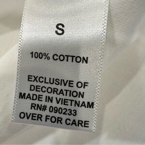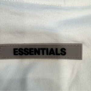 BRAND NEW with tags & in bag. Fear Of god essentials unisex white tee shirt.  Short sleeves, front black logo, crew neck, 100% cotton. Size small. Runs oversized. Please see photos for measurements