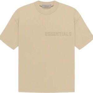 Fear of God Essentials SS Tee Sand is a simple yet stylish t-shirt made from a soft, comfortable cotton blend.