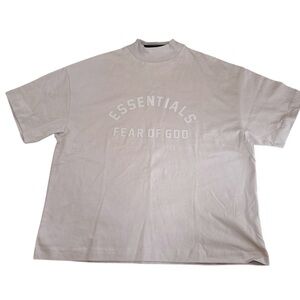 Essentials Fear of God Kids Tee | Taupe | Size 12 | Mock Neck Logo Shirt