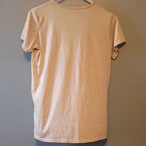 Classic beige V-neck tee. Soft fabric. Ideal for casual wear.