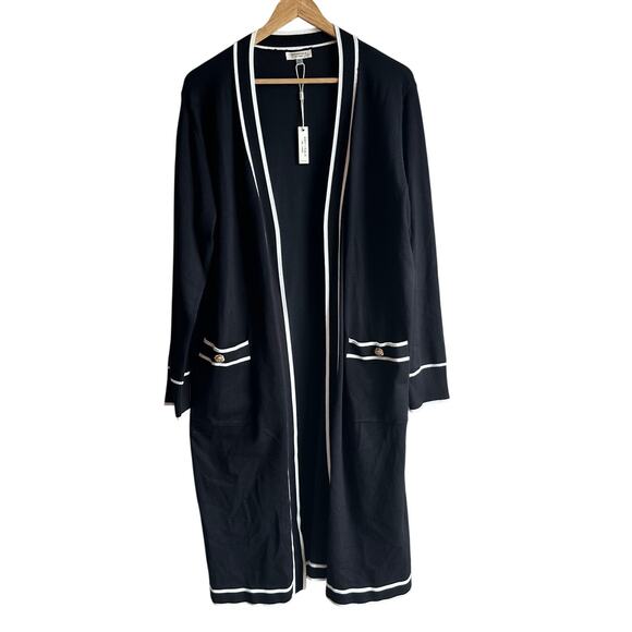 Essentials Milano Long Open Front Cardigan Duster Sweater Black White Gold