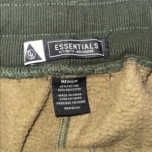 Cozy fleece-lined pants. Olive green color. Essentials brand.