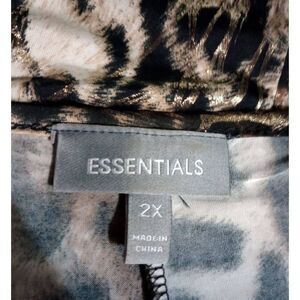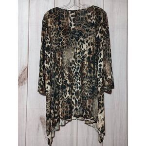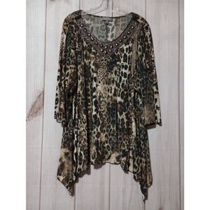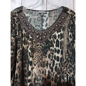 Essentials Shirt Ladies 2x Brown Animal Print Beaded 3/4 Sleeve Scoop Neck