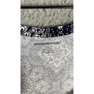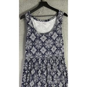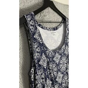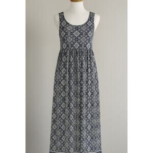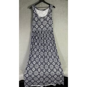 Essentials Sleeveless Navy White Patterned Maxi Dress Scoop Neck Size L