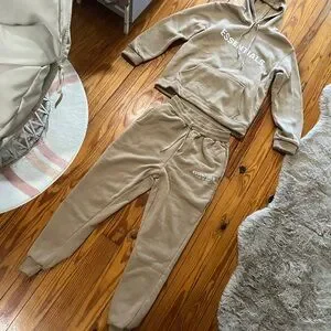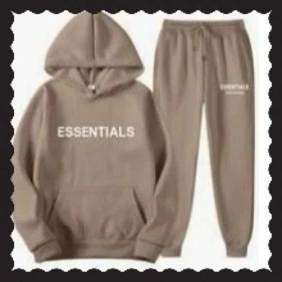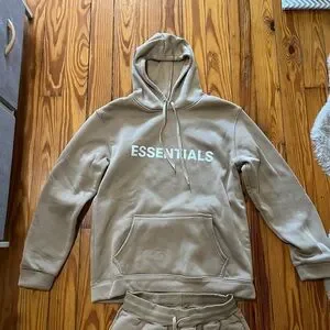 Comfortable Essentials hoodie and sweatpants set in a stylish light brown color. Perfect for casual wear. Note- this is NOT actual Essentials. It is fake. However, the quality is good, i just dont wear it. Brand new without tags. Size large, but runs small. I am 5โ3 115lbs and it fits me baggy style. Pockets in pants and hoodie. Bought for $79. No rips, stains, or holes.