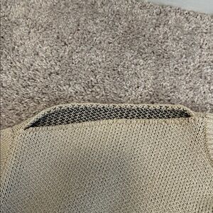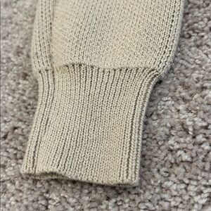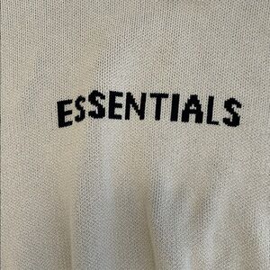 Beautiful beige Essentials long sleeve sweater with black logo. NOTE: one of the shoulder seams has come apart and needs to be repaired/sewn (should be an easy fix) - see all photos. Other than that in great condition. Priced accordingly. Bundle from my closet and save on shipping