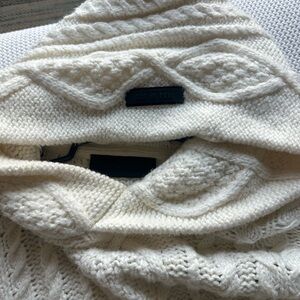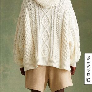 Elegant cream turtleneck with intricate cable knit design. Soft and warm for any occasion.
