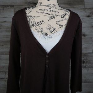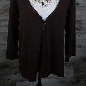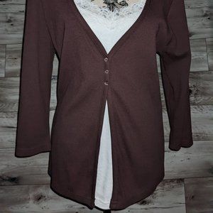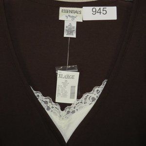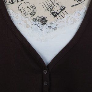 NWT~ Excellent Condition! 95% cotton/5% Spandex. Chocolate Brown Color Ribbed Blouse with a White Lace Top Interior, Very Sheik!