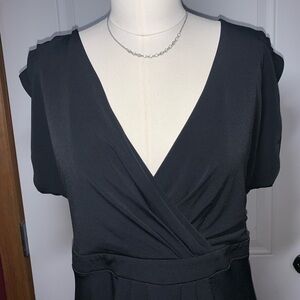 Essentials by ABS Black Dress Midi V neck Short Sleeves Size 10