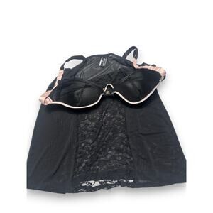 Essentials by ABS Black Lace & Mesh Babydoll Lingerie Size Large