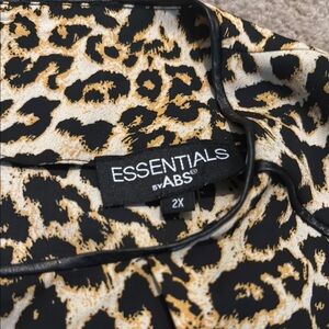 Essentials by ABS Leopard Print Top with Black Leather Trim