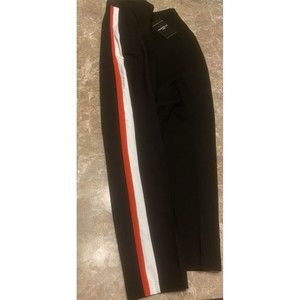 Essentials by ABS Women Black Casual Pants Size 2 Leg Stripe With Red And White.