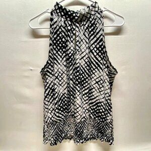 Essentials by Milano Career Tank Women's Large Black White Mock Neck Smocked Hem