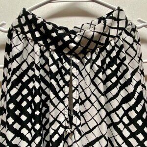 Essentials By Milano Career Tank Women's Large Black White Mock Neck Smocked Hem
