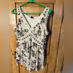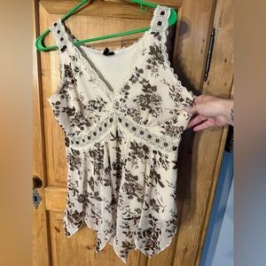 Essentials by Milano Cream/Brown Floral Top Sz Small Whimsigoth Fairycore Gypsy