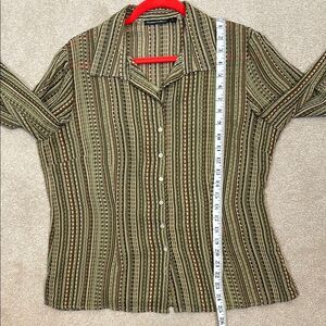 Essentials by Milano Green Brown Button Down Fairy Goblin Earthy Natural Neutral Coquette Boho Y2K Shirt Large