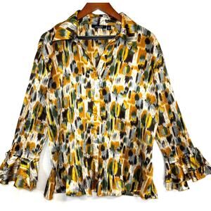 Essentials by Milano XL Buttoned Top Abstract Retro Satin Pleated Y2K Glam Boho