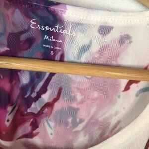 Essentials by Sioni White & Blue Floral Scoop Neck Short Sleeve Top S