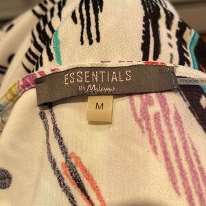 Essentials by Milano white graphic print split neckline halter top. Crepe-like texture of polyester/spandex blend. Medium. Excellent condition. Nonsmoking home.