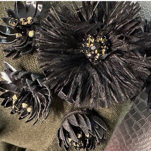 Essentiel Antwerp Forest Green Wool Sweater Black Flower Accent Size Medium