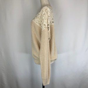 Essentiel Antwerp modern, pretty cream color cotton blend designer crew neck sweater with beautiful lace detail at the across the front and back yoke. Size small, runs very big. Gently worn in very good condition.