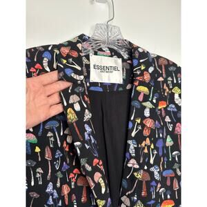 Essentiel Antwerp Mushroom Print Ruffle odell Blazer Black Multicolor 36 small