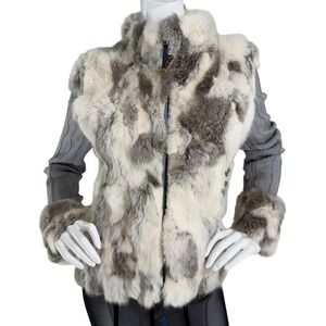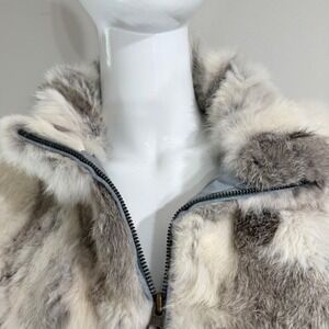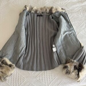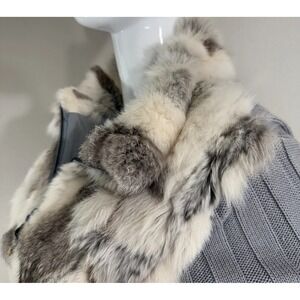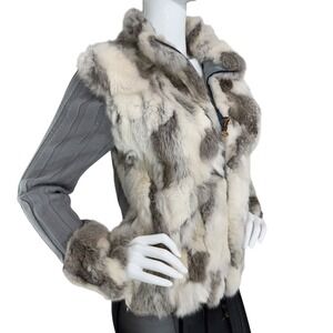Essenza Y2K Real Lapin Fur Jacket Rabbit Fur Trim Zip Sweater Cardigan Size M