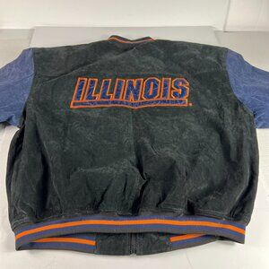 Style- Jacket Illinois Fighting Illini Leather Suede Jacket Adult Extra Large Black & Blue Full Zip Bomber