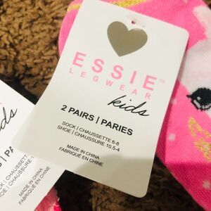 Essie Legwear Kids Ankle Socks Two Pairs Girl Pack Size 6-8 Kitten Pink NEW