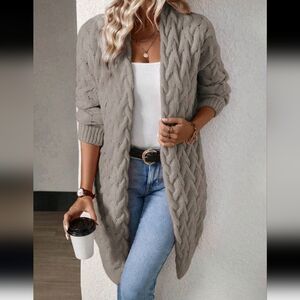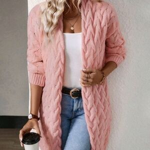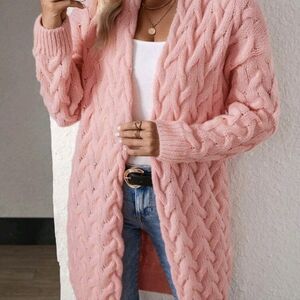 Essnce Solid Crochet Casual Versatile Knitted Cardigan, Long Sleeve