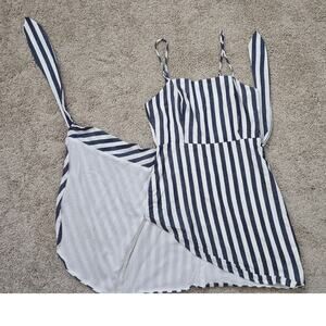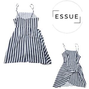 Blue and white striped top with spaghetti straps and a wrap-around tie at the waist from Essue. Women's Juniors Size Small EUC