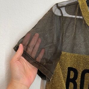 Essue Crop Top Women's L Gold Metallic Pullover Party Boy Trap Short Sleeve