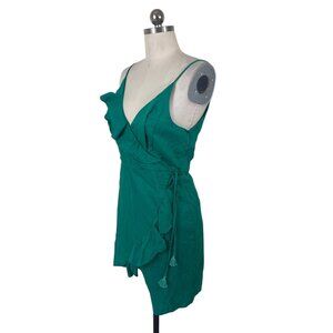 Essue Dress Womens Medium Green Solid Ruffle Solid Tassle Sleeveless Dainty Boho