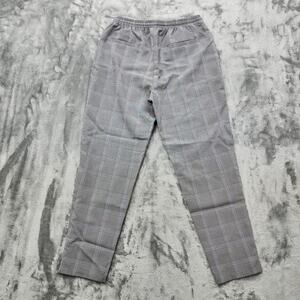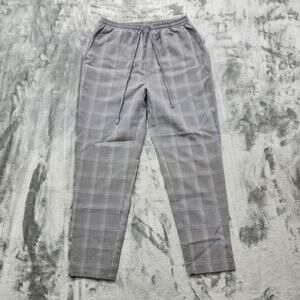 Essue Pants Womens M Black White Plaid Pull On Tapered Ankle Drawstring Preppy