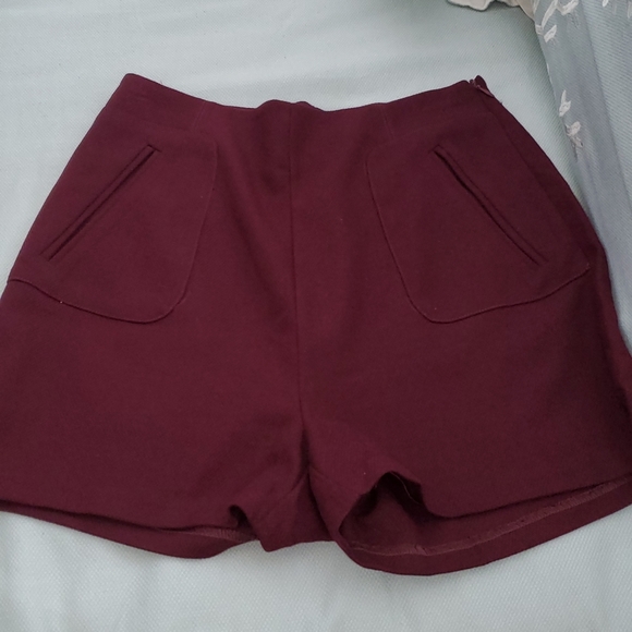 Sexy high waisted shorts by Essue. Deep burgandy. Zip up side, fully lined, size S. Euc.